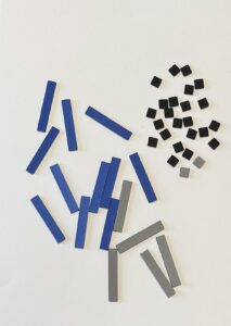 Innhold: 25 sorte brikker og 16 blå (smale) brikker. Brikkene har to farger. Baksiden er grå.